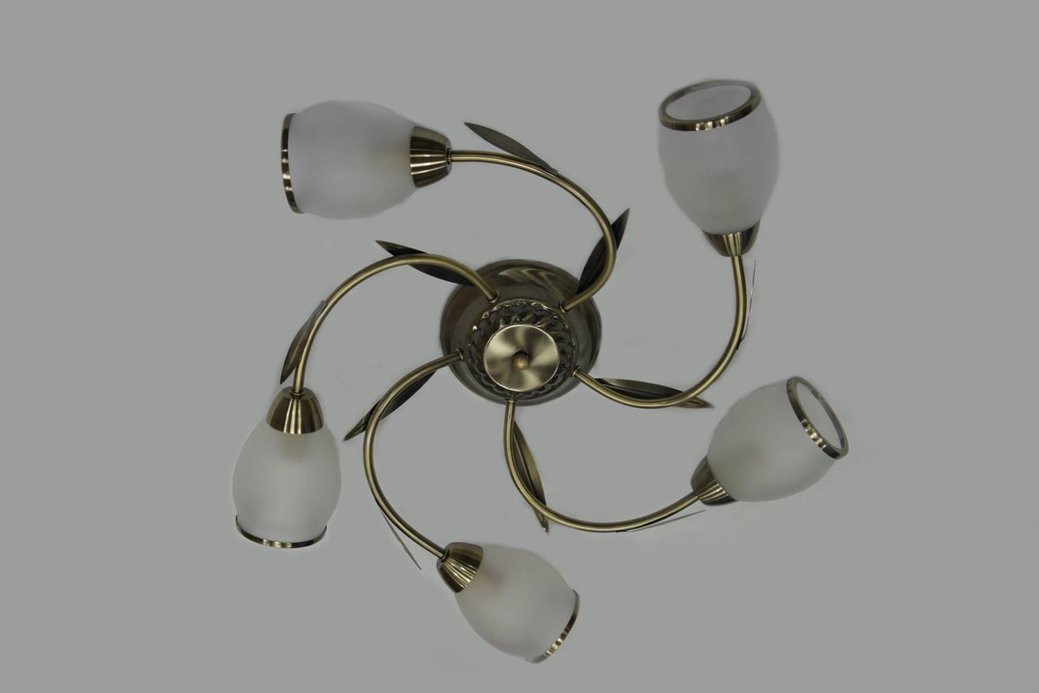 Цвет: бронза. 5 Х 60W Е14. Плафон - стекло.