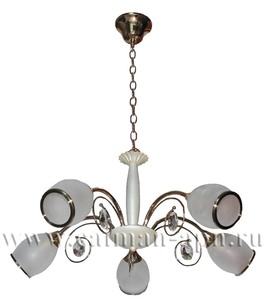 Крепление к потолку на крюк. Цвет: золото + жемчуг теплый. 5 Х 60W E14.