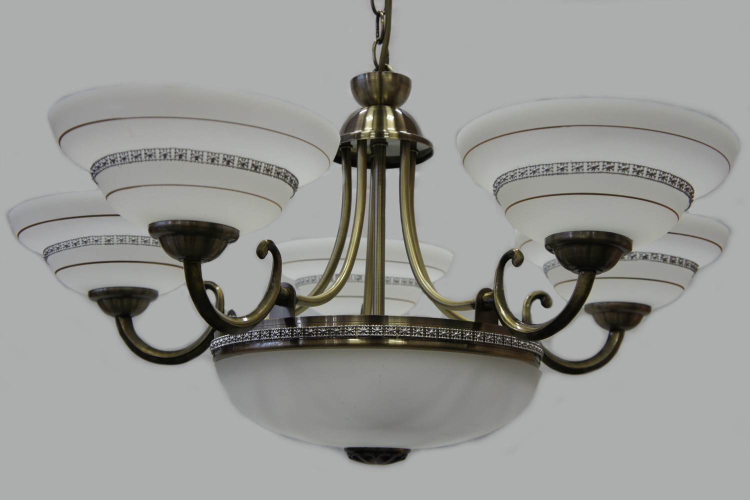 Крепление к потолку на крюк. Цвет: бронза. 7 Х 60W E27. Плафон - стекло