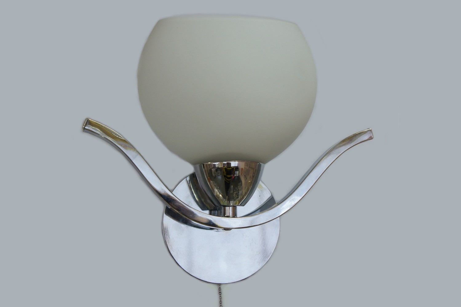 Светильник настенный для скрытой проводки. Цвет: хром 1 Х 60W E27. Плафон - стекло.