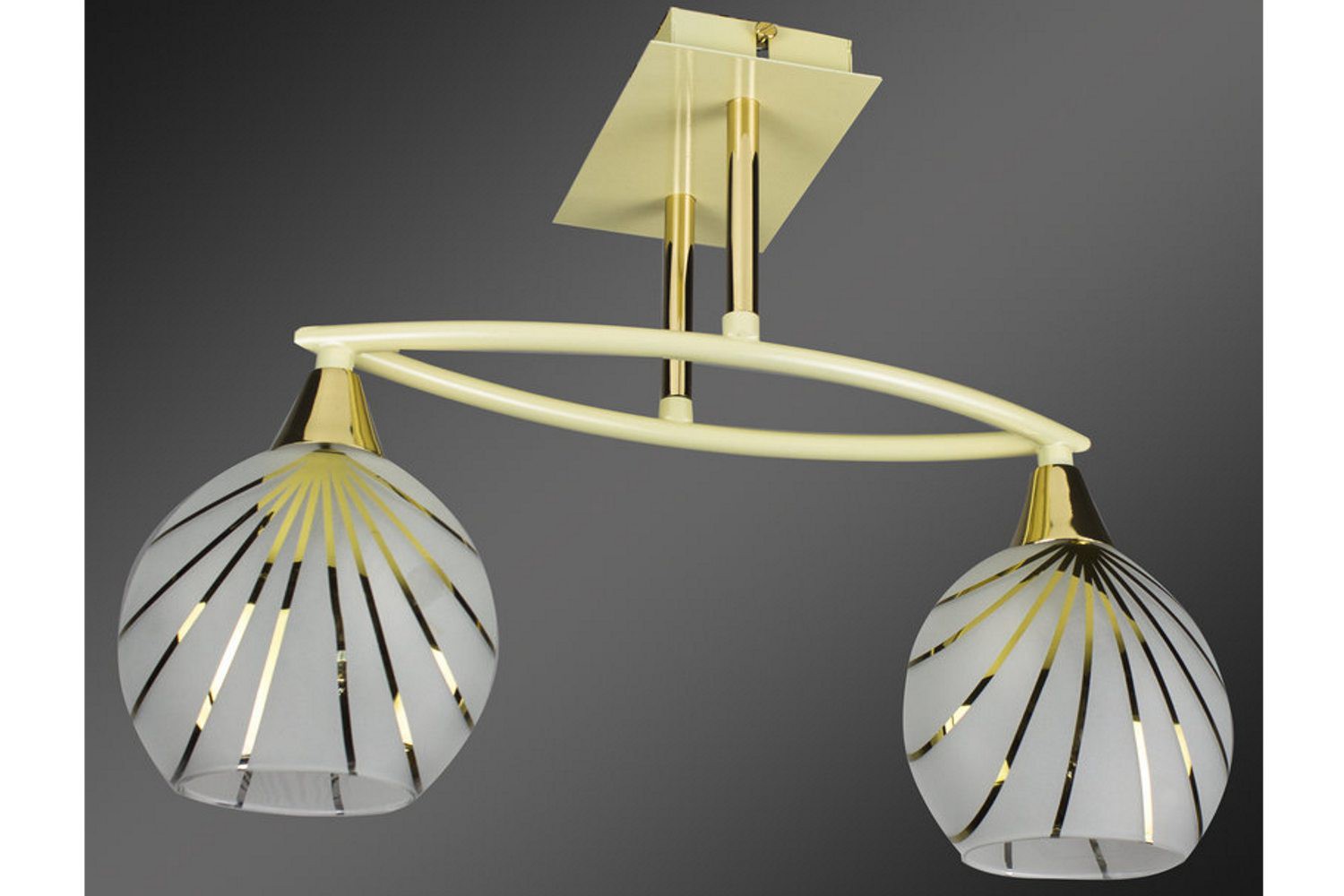 Крепление к потолку саморезами. Цвет: теплый жемчуг + золото. 2 Х 60W E14. Плафон - стекло.