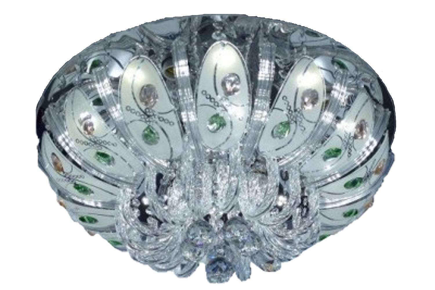 Светильник потолочный, с пультом дистанционного управления. Цвет хром. 6 X E14 60W. Подвески - хрусталь. Диаметр 480 мм. Разноцветная подсветка светодиодов.