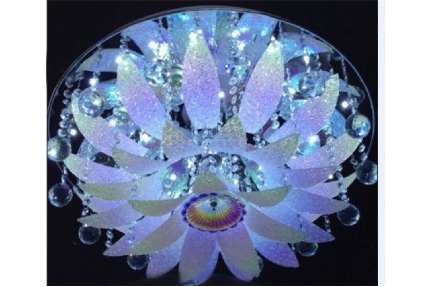 Светильник потолочный, с пультом дистанционного управления. USB MP3 плеер. Цвет хром. Диаметр 600 мм. 9 X E14 60W. Подвески - хрусталь. Белая подсветка светодиодов.
