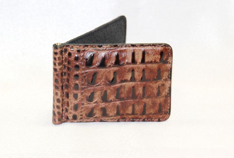 Зажим для купюр на магните, выполненный из натуральной кожи. С одной стороны расположен карман на кнопке для монет.