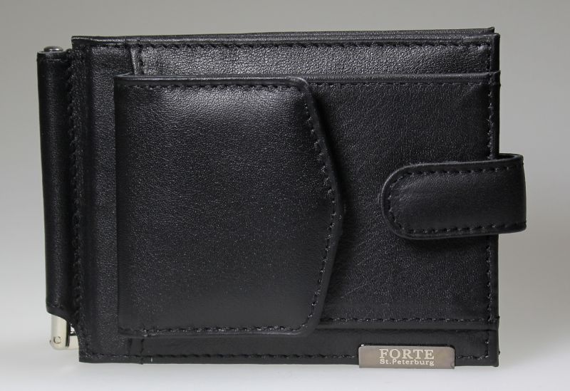 Внутри отделение с пластиковым окошком, 1 потайной карман, 2 кармана для кредитных карт,на передней стенке отделение для мелочи.