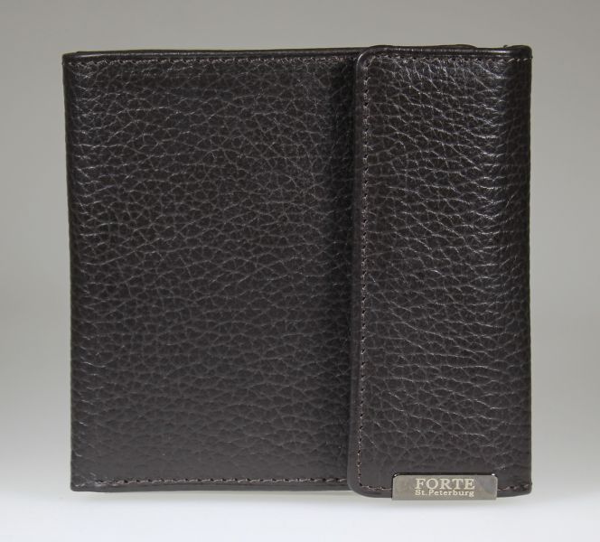 Портмоне мужское "Forte", среднего размера, из натуральной кожи. Внутри 1 отделение для купюр, 1 потайной карман, 4 отделения для кредитных карт, отделение для мелочи на скрытой кнопке.