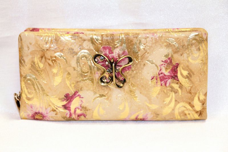 Кошелек женский (мягкий) на молнии, выполненный из яркой натуральной кожи. Изделие декорировано украшением. Внутри 3 отделения для купюр, отделение для мелочи на молнии, 2 открытых кармана, 1 большой потайной карман, отделения для кредитных карт.