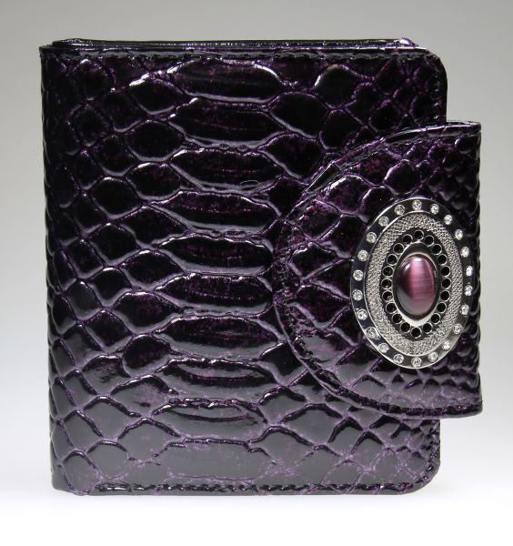 Компактное женское портмоне "Forte" с оригинальным клапаном на кнопке, декорированный ярким украшением. Изделие имеет два основных и два дополнительных кармана, монетник «коробочка», четыре отделения для пластиковых карт и одно отделение с окошком.