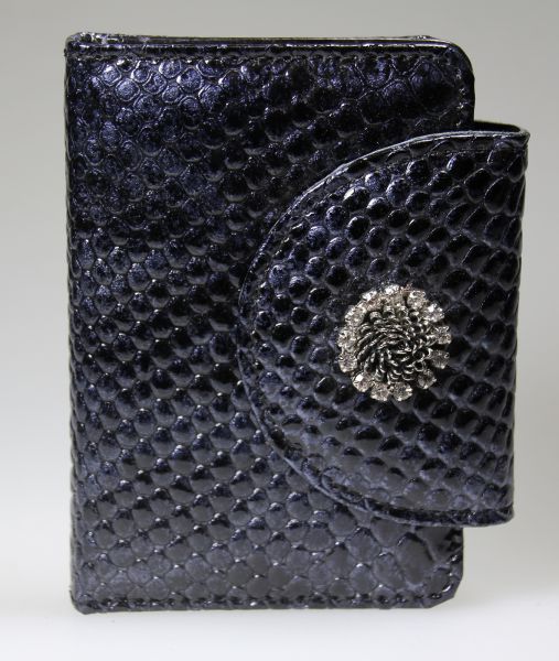 Визитница вертикальная из яркой натуральной кожи. Изделию придает шик аккуратный клапан, декорированный мерцающим украшением. Внутри карманы из кожи. Лист на 1 визитку. Пластиковый блок на 18 кредитных карточек или 36 визиток.