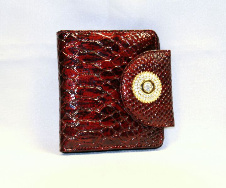 Компактное женское портмоне "Forte" с оригинальным клапаном на кнопке, декорированный ярким украшением. Изделие имеет два основных и два дополнительных кармана, монетник «коробочка», четыре отделения для пластиковых карт и одно отделение с окошком.