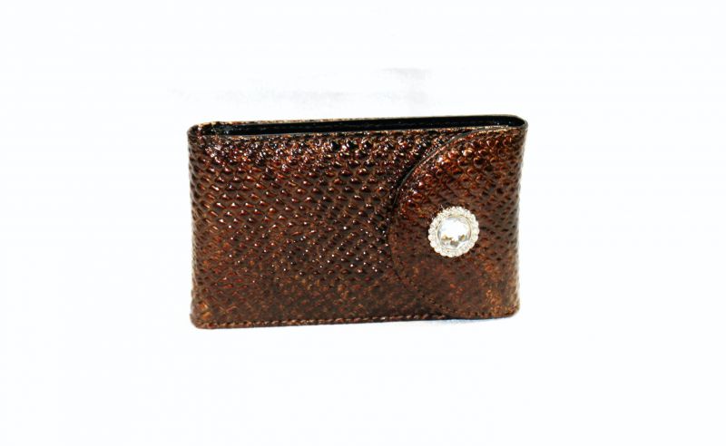 Кредитница горизонтальная из натуральной кожи. Закрывается на магнитный клапан. Лист на 1 визитку. Внутри пластиковый блок на 36 карточек. Упаковано в фирменную коробку "Forte" . Размеры 115*70*22.