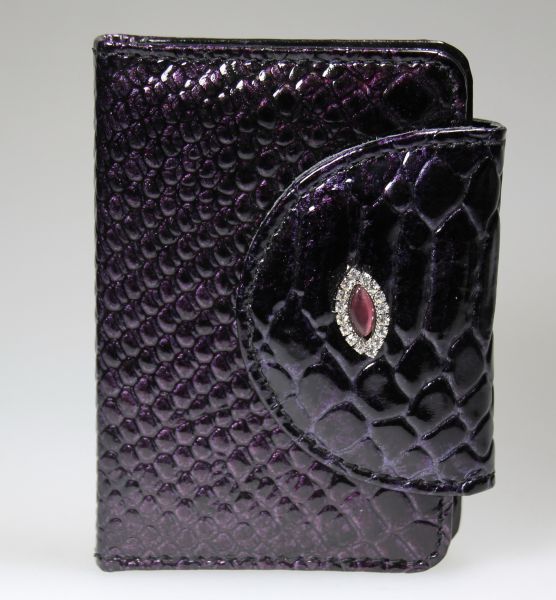 Визитница вертикальная из яркой натуральной кожи. Изделию придает шик аккуратный клапан, декорированный мерцающим украшением. Внутри карманы из кожи. Лист на 1 визитку. Пластиковый блок на 18 кредитных карточек или 36 визиток.