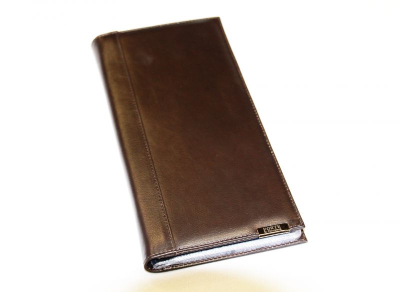 Визитница из натуральной кожи. Внутри уголок для бумаг и отделения для карточек. Лист на 4 визитки.Размеры 25*12*1,5. Упакована в фирменную коробку.