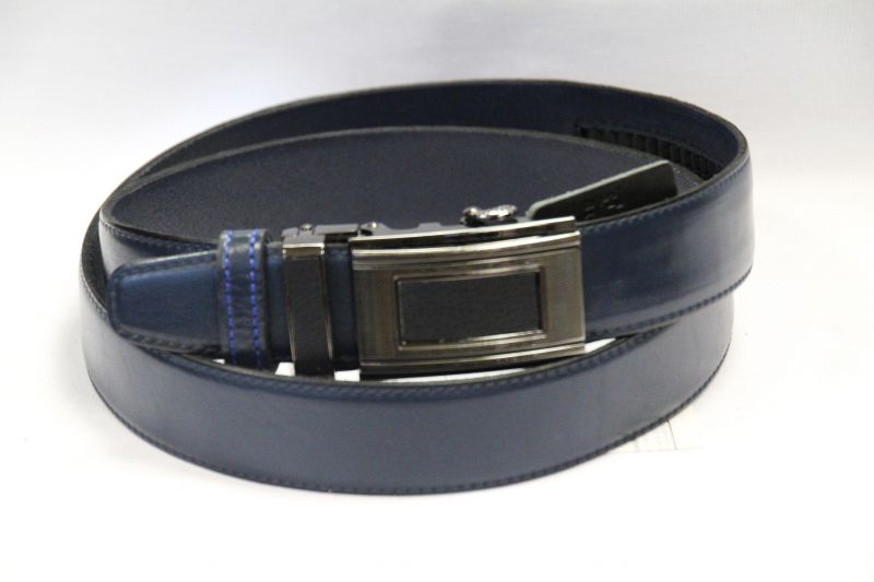 Ремень дутый из натуральной кожи,с декоративной строчкой, с пряжкой "Автомат", ширина 35 мм.