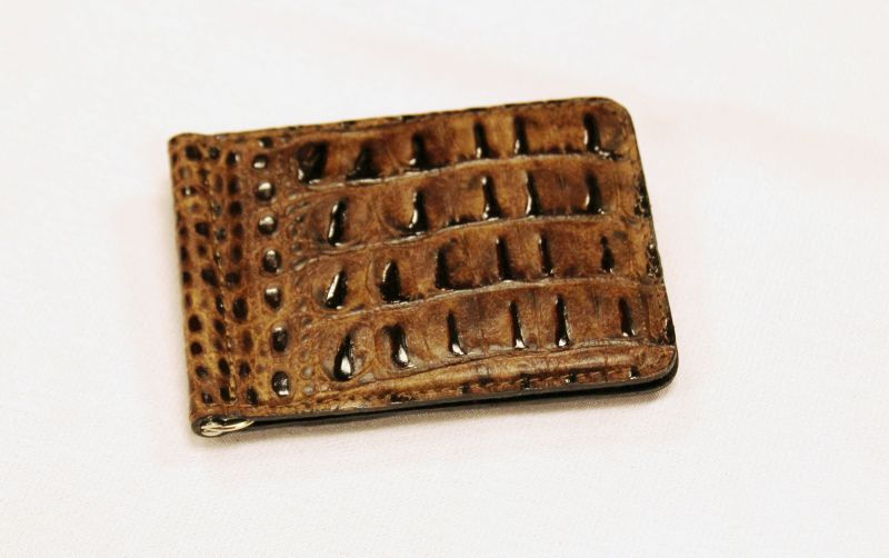 Зажим для купюр на магните, выполненный из натуральной кожи. С одной стороны расположен карман на кнопке для монет.