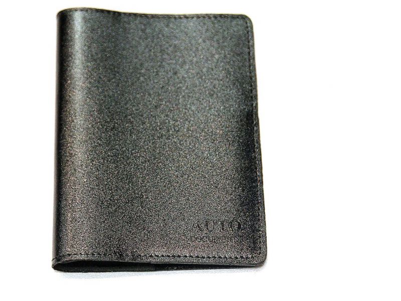 Бумажник водителя стандартного размера, из натуральной кожи. Внутри дополнительный карман из кожи. Пластиковый блок для документов (6 карманов). Размеры 9*13 см.