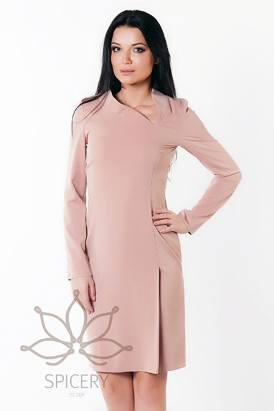 Оригинальное платье с длинными рукавами и фигурным вырезом горловины. Модель приталенного силуэта. Идеальный вариант для создания привлекательного женственного образа.