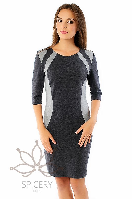Прекрасное платье актуальной длины приталенного силуэта. Модель с рукавами 3/4 и округлым вырезом горловины. Идеальный вариант для создания привлекательного женственного образа.